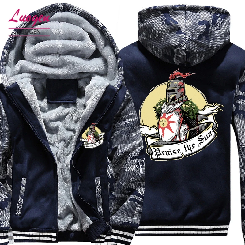 USA SIZE 2018 New Fashion Winter Warm Dark Souls hoodies Game Praise the sun Men Thicken Hooded War